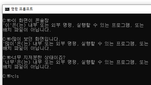 이런 창에 우리가 cls라고 입력하면 어떤 변화가 일어나는지 확인해 보도록 하겠습니다.