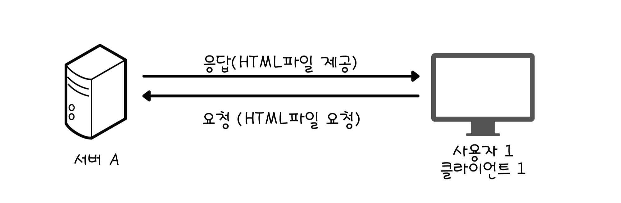 순수하게 HTML언어만을 전달하는 형태의 웹 서비스는 아래와 같이 동작합니다.