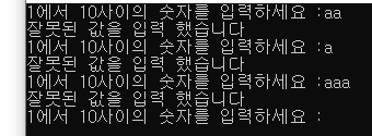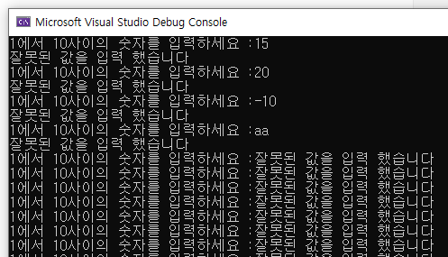 계속해서 잘못된 값을 입력받았다며 무한하게 반복되어 버립니다.