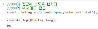 예제처럼 여러 줄을 한 번에 입력 또한 가능하며 실제 랜더링 된 DOM에서 html 태그의 lang속성에 접근하여 값을 추출한 모습입니다.