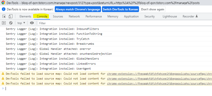 그림처럼 F12를 누르시면 현제 웹브라우저에의 웹페이지에 Javascript를 적용할 수 있는 Console 탭이 있습니다.