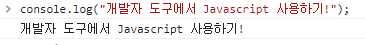 이제 여기서 간단한 Javascript를 사용해 보도록 합시다. 콘솔 창에 출력을 하기 위해서 console.log함수를 이용하면 됩니다.