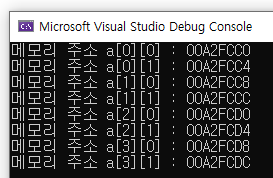 printf("메모리 주소 a[%d][%d] : %p\n",i,j, &a[i][j]);